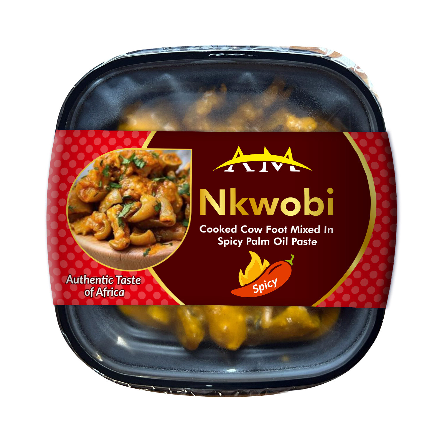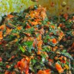 Cooked cow foot blended with spices and palm oil